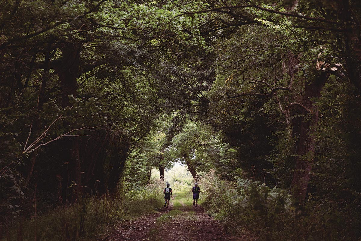 Mi corazón late con fuerza. Intento respirar profundo para controlarlo y decido pegarme a un grupo de corredores que van enfrente. En el primer casillero, la prueba consiste en resolver cuatro operaciones matemáticas, pero dado que otras personas llegan antes que yo, simplemente me pasan el libro. Arranco la hoja que me corresponde de The Ink Black Heart de Robert Galbraith, la coloco dentro de mi chaleco de hidratación y continúo, persiguiendo a los líderes. Después de apenas 30 minutos, ya estoy sudando profusamente. A la vista está una torre de 34 metros que indica el sitio del quinto libro. Es extraño pensar que cuando empiece la segunda vuelta, estaré recorriendo el mismo camino en el sentido opuesto y estará oscuro.