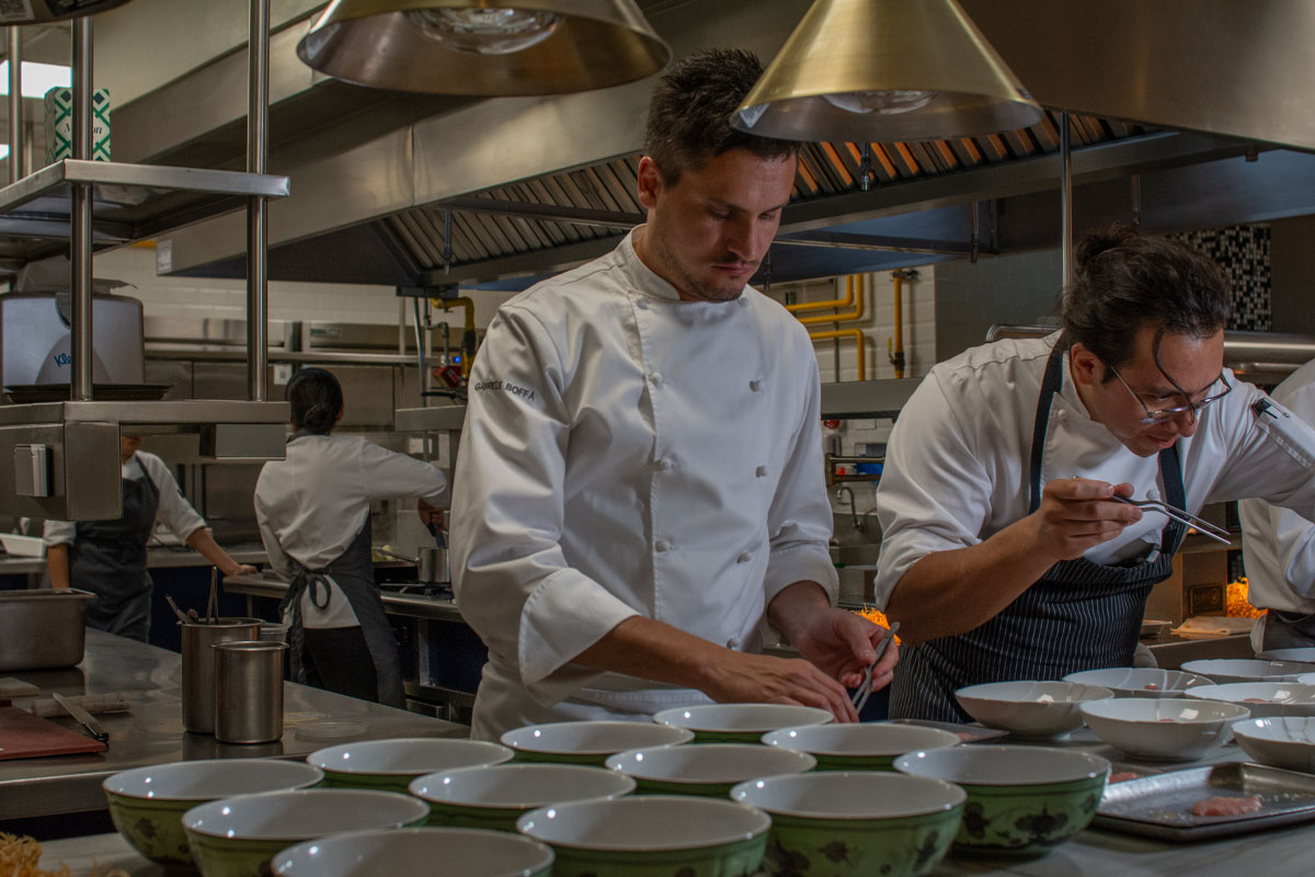 Desde una entrada de piel crujiente de pollo con caviar y ostión Kumiai con salsa de semilla de girasol, hasta una pasta fresca con mantequilla de limón y caviar, cada platillo destacó por su exquisitez y técnica impecable. La chef Gabriela Águila también brilló con una barra de postres que incluyó delicadezas como tiramisú, panna cotta y cannoli.